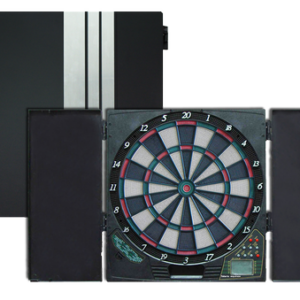 Elektronski pikado sa ormarićem sa 6 ugrađenih držača za pikado.29 igara sa 90 varijacija igara. Patentirana funkcija "cyber match" za solo sviranje.